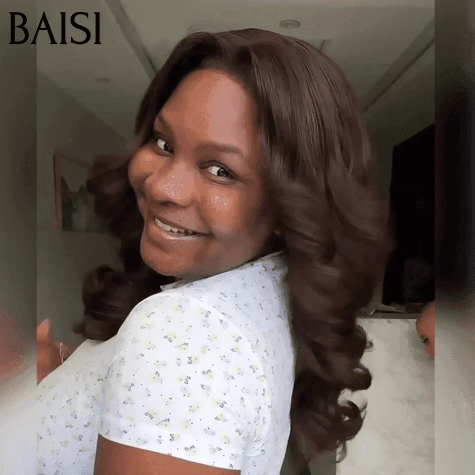 BAISI 2x4 lace closure Lisse Bob avec Frange 8 Pouces 68€ ou 13X4 Lace Frontal Perruque Bouclée Body Wave 12 pouces 95€ en Couleur Marron BS65