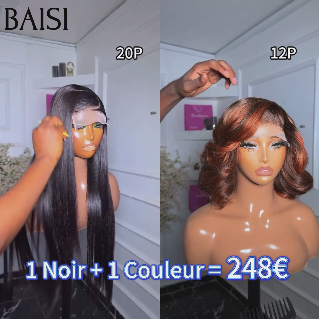 BAISI 2 Couleur Perruques 248€ 13X4 lace egg wave en couleur mixte 4#350# et 4X4 lace lisse 20 pouces en 100% cheveux humains FR38