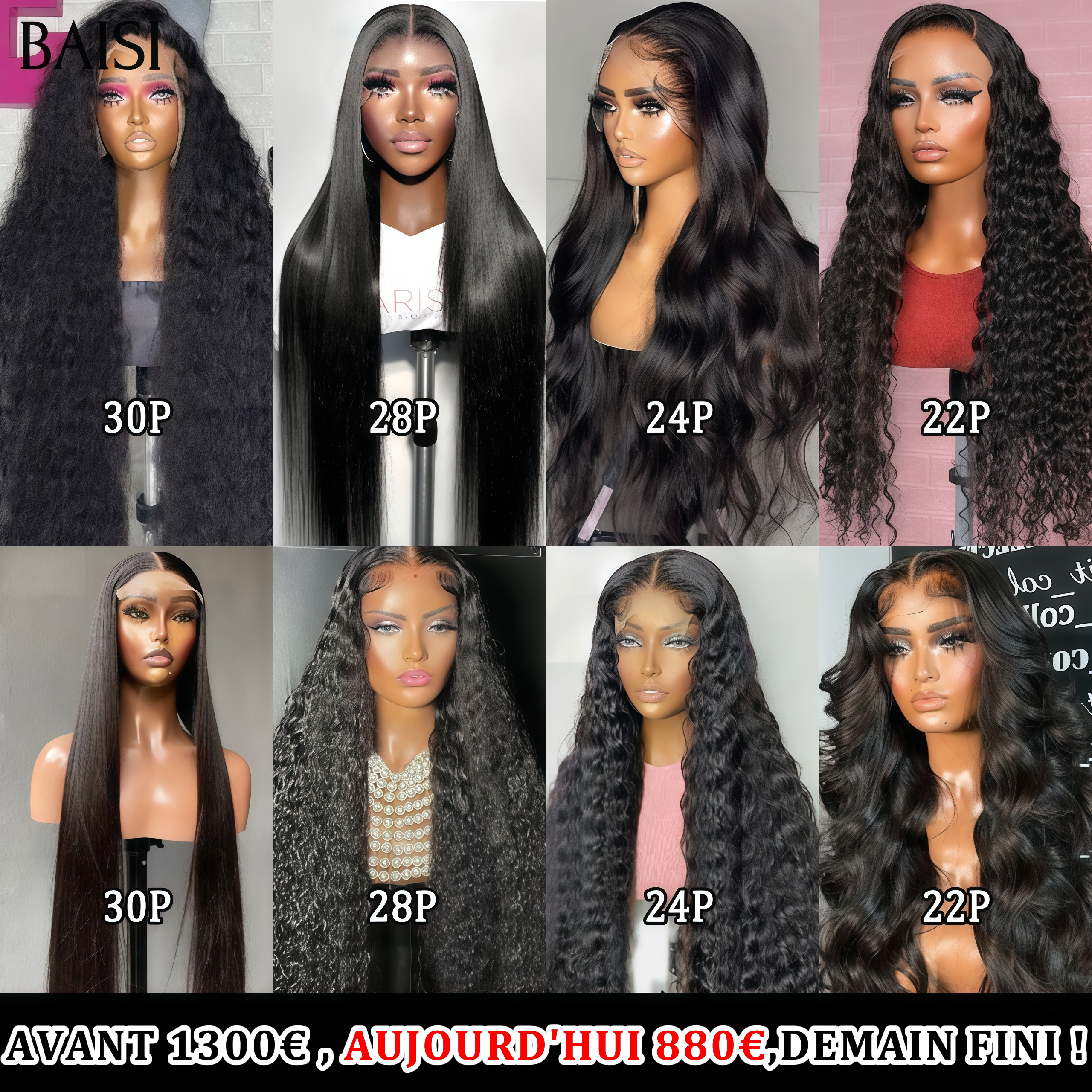 BAISI Lot De 8 Perruques Hyper Longue Lisse Avant 1300€ , Aujourd'hui 880€ En 100% Cheveux Humains 12A
