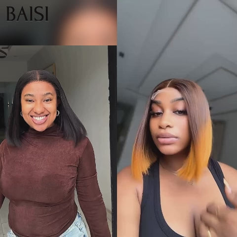 BAISI 2 Perruques 1 Noir +1 Couleur = 109€ 4X4 laceclosure 8 Pouces NOIR et 13X4 lace frontal 4T27# en 100% vrais cheveux humains