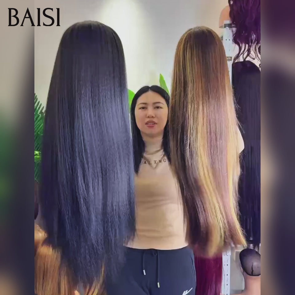 BAISI 2 perruques 200€ Perruque bandeau kinky straight 32 Pouces en noir Blended human hair et 13x4 lace frontal lisse en Mixte Miel 26 pouce en 100% Cheveux Humains