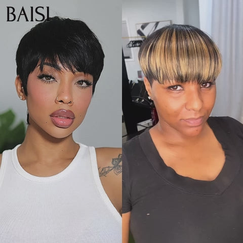 BAISI 2 perruques Flash Offer 50€ Vente en gros pixie lisse Fabriqué à la Machine 2 couleurs en 100% vrais cheveux humains BS30