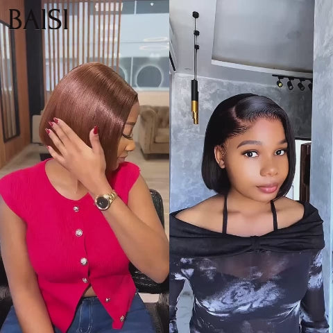 BAISI 2 perruques pixie Offre spéciale 109€ 13X4 lace frontal lisse 10 pouces noir et marron en 100% vrais cheveux humains