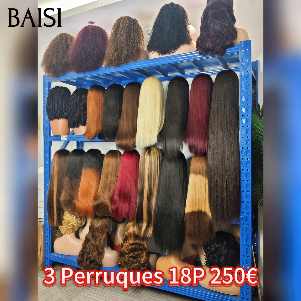 BAISI 3 perruques 250€ 13x4 lace frontal lisse 18 Pouces en 3 couleurs noir et marron et bordeaux en 100% Cheveux Humains
