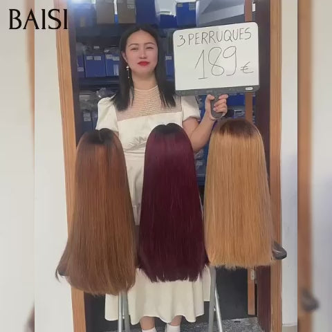BLACK PROMO BAISI Promo 3 pour 189€ Black Friday lace frontal 13x4 Perruque Lisse 18 Pouces en 3 couleurs en 100% Cheveux Humains