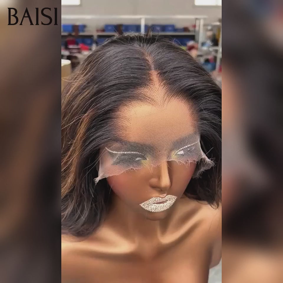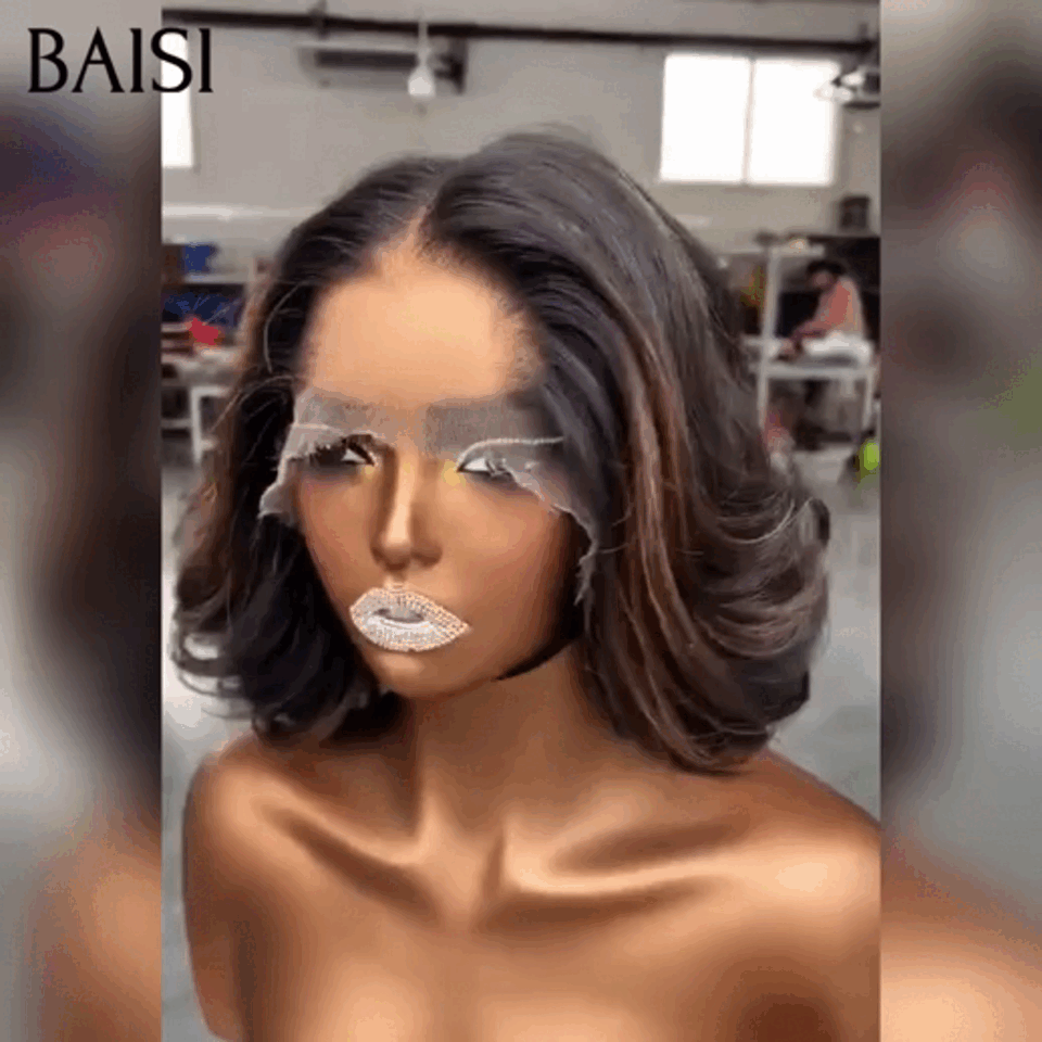 BLACK PROMO BAISI Perruque BOB 13x4 lace frontal NOIR Mixte brun 84€ egg curl wave en 100% cheveux humains