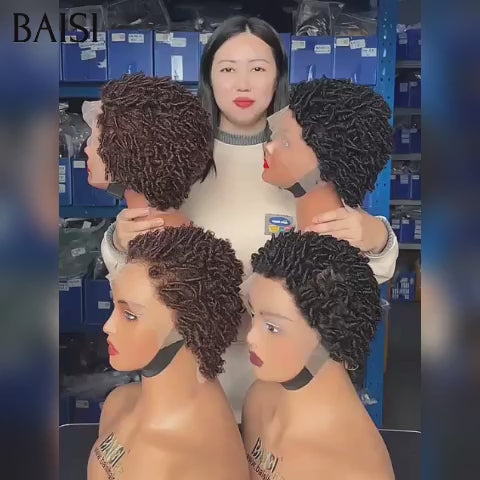 BLACK PROMO BAISI PROMO Le plus BAS PRIX 2 Perruques 75€ pixie avec 13x4 lace frontal bouclé 2 couleurs marron et noir en 100% Cheveux Humains