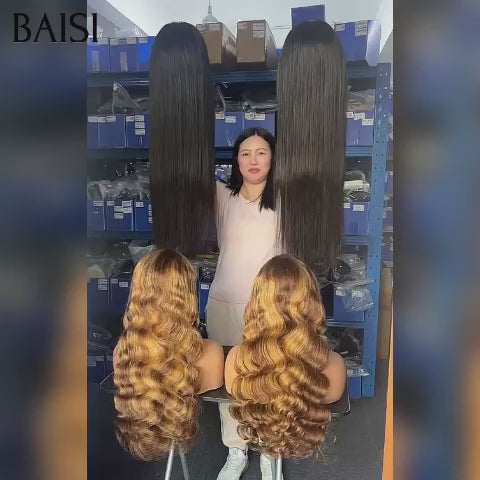 BAISI Vente en gros 2 Perruques 300€ 13x4 lace frontal Body wave 2 couleurs Mixte Miel 24 pouces et NOIR 30 Pouces en 100% Cheveux Humains