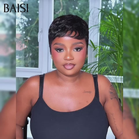 48H Livraison TVA 0€ BAISI 10-Zoll-Perücke 69 € Lockige Wasserwellen-Perücke, maschinell hergestellt aus 100 % Echthaar