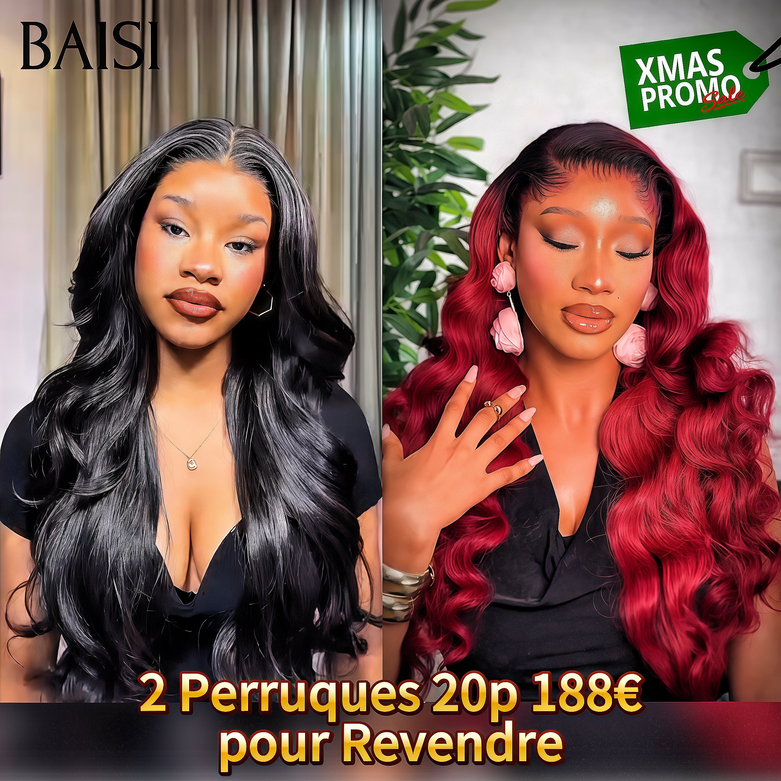 BAISI 3 Perücken zum Weiterverkauf 299 € lockige Welle und glatt und 065C Schwarz in 100 % echtem Echthaar FR38