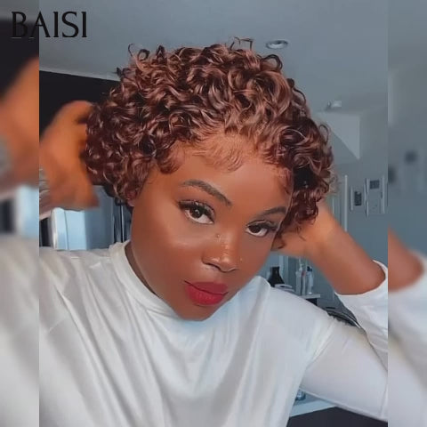BAISI 13X4 Lace frontal Perruque pixie En Couleur Marron 59€ ou 1B Noir 85€ en 100% Vrais Cheveux Humains
