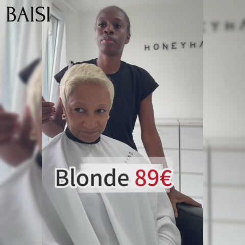 48H Livraison TVA 0€ BAISI Perruque Pixie bouclé petite coupe Noir 6 pouces 59€ ou 13X4 pixie Lisse 1B#Mix30# 78€ ou blonde 613# 89€ En 100% Cheveux Humains