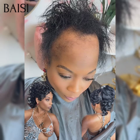 BAISI Perruque Pixie Finger Wave petite coupe fabriqué à la machine 100% comme indiqué sur la photo couleur naturelle En 100% Cheveux Humains