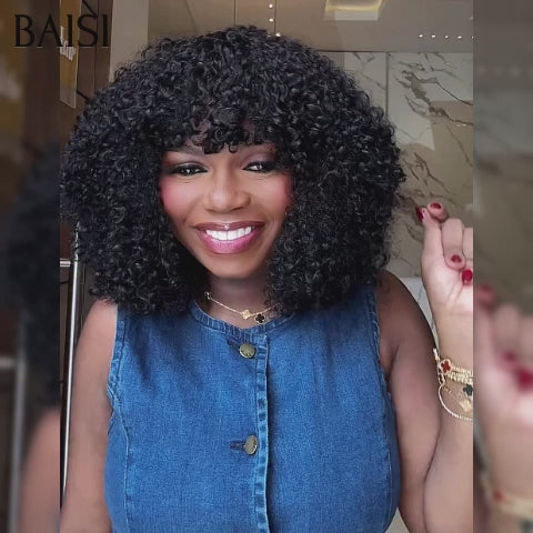 Achetez 2 Prix D'usine BAISI Kaufen 5 Stück FACTORY PRICE CHINESE CUT BLACK MIX BLONDE LACELESS SMOOTH BOB PERÜCKE MIT FRANSEN #1BMIX#613 (Kein Code erforderlich)