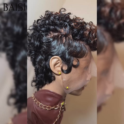 BAISI 13X4 Spitzen-Pixie-Wellenperücke in der Farbe 99J# 65 € in 100 % Echthaar BAISI20