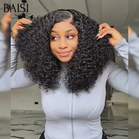 BAISI Luxus-Eierwellen-Perücken mit Pony, hergestellt aus doppelt gezogenem Haar mit natürlichem Mittelscheitel, 300 % Dichte
