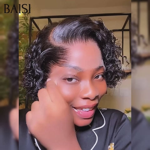 BAISI Promo Geschenke Black Curly Pixie Cut + Free Iron + Free Brush + Free Cap 80€