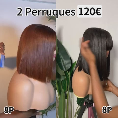 BAISI 2 Perruques 120€ Lisse avec Frange 8 Pouces Sans lace Lisse NOIR et Marron 250% densité DE luxe en 100% Cheveux Humains BS65