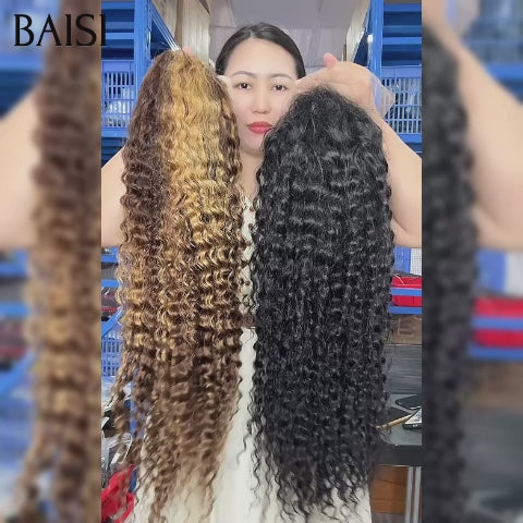 BAISI 2 Perruques 200€ 13X4 lace frontal curly wave en couleur Mixte et NOIR 26 Pouces 100% vrais cheveux humains BS65