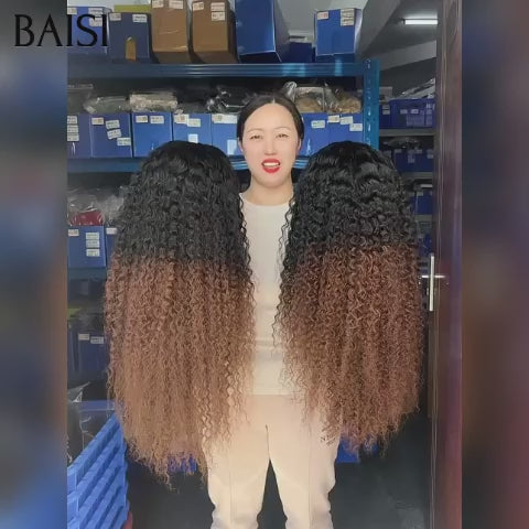 BLACK PROMO BAISI PROMO BLACK FRIDAY lace frontal 13x4 Perruque curly wave marron avec racine NOIR 1BT4# 22 pouces 120€ en 100% Cheveux Humains