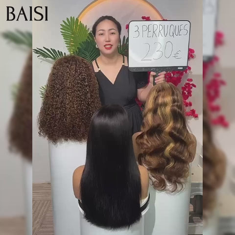 BAISI PROMOTION 230€ 3 perruques Vente en gros 13X4 lace frontal 18 Pouces curly wave mixte et Body wave Mixte et 4x4 lace Lisse NOIR 100% vrais cheveux humains