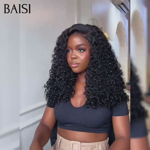 48H Livraison TVA 0€ BAISI Promo prix 119€ 20Pouces LACE Frontale Sans Colle PERRUQUE BOUCLÉE CURLY EN Noir 100% CHEVEUX HUMAINS FR38