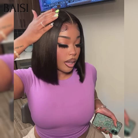 48H Livraison TVA 0€ BAISI 13x4 Frontal Perruque Bob Lisse En Noir ou Chataîn 1B#27 Coupe Carrée En 100% Vrais Cheveux Humains
