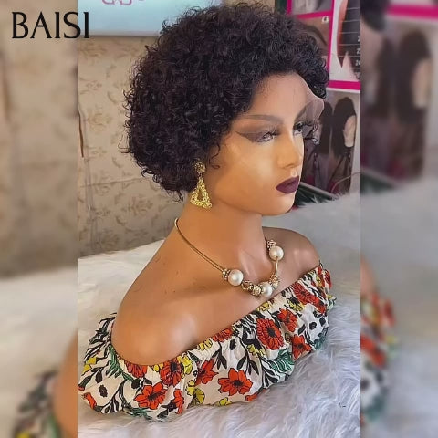 BAISI perruque afro curl pixie 13X4 lace frontal Noir 14 pouce ou avec baby hair en couleur marron ou noir en 100% vrais cheveux humains