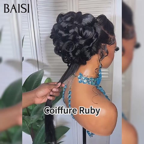 BAISI Coiffure de luxe Ruby Perruques Mariage Prête à porter chignon et personalisation comme sur la vidéo 100% identique avec lace frontale pour mariage ou événement spécial