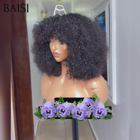 BLACK PROMO 48H reçu BAISI promotion Moitié Prix Bas Prix 75€ Perruque water wave avec frange 12 pouces NOIR Fabriqué à la Machine en 100% Cheveux Humains