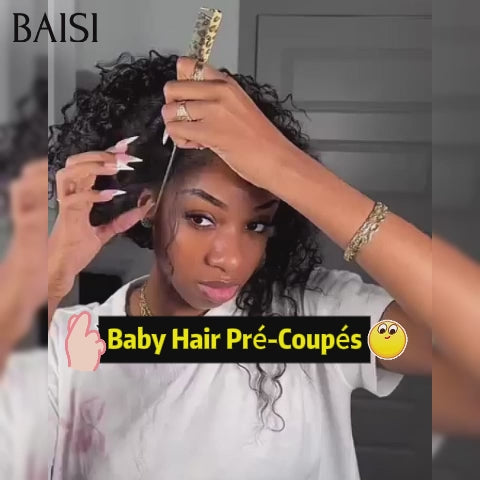 BAISI 13X4 lace frontal Sans Colle 95€ ou T-part lace perruque Curly 10 Pouce 91€ en 100% cheveux humains Code: BS65