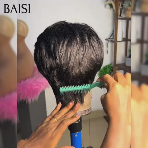 48H Livraison TVA 0€ BAISI Top Modèle Petite Coupe 55€ la Noir ou Rose en 100% Cheveux humains Fabriqué à la Machine