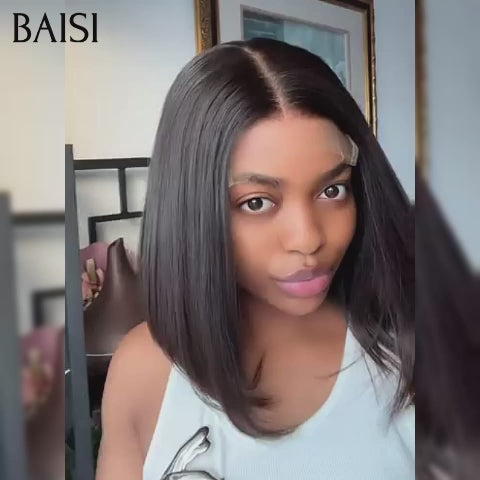 BAISI 4X4 lace closure Smooth Bob 10 inch 78€ or Combined wig 2 wigs 140€ 2X6 smooth black or 4X4 smooth Mixed in 100% human hair