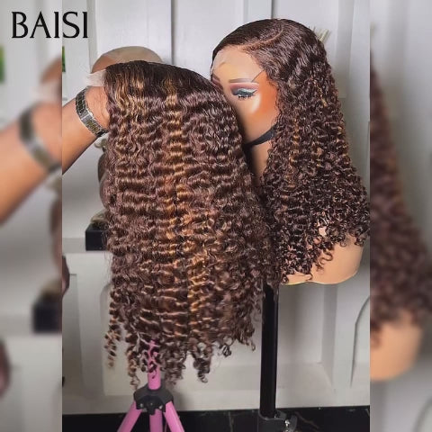 BAISI 13X4 Curly Wave Wig BLACK Mix brown 1B#30# 18 inches €179 300% Density in 100% Human Hair CODE: BAISI20
