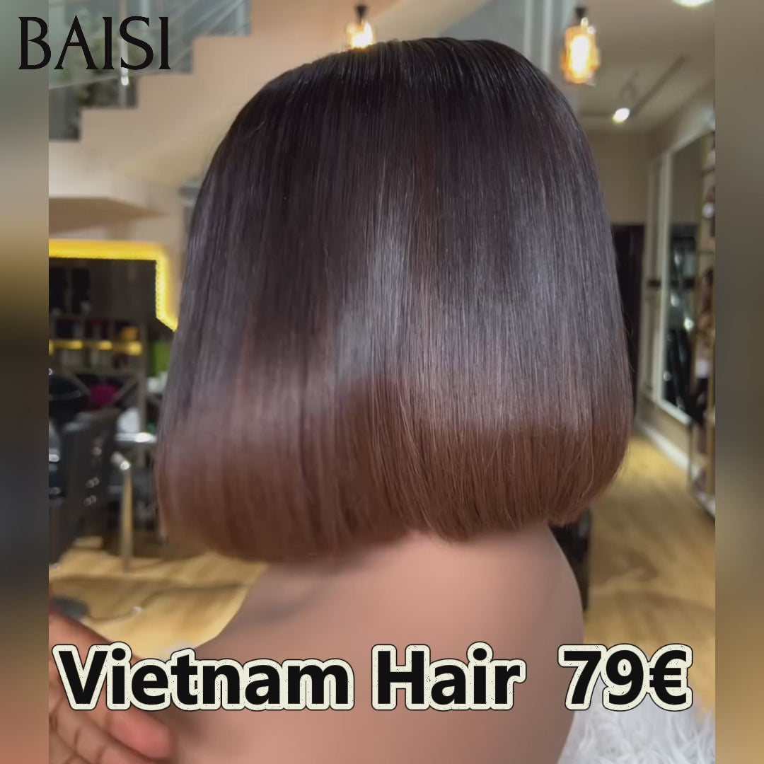 48H Livraison TVA 0€ BAISI Luxury Wigs SDD BONE Straight 100% Vietnam Hair 2X6 Lace BOB Wig Black Smooth Vietnam Hair 300% density more than 20 years of use