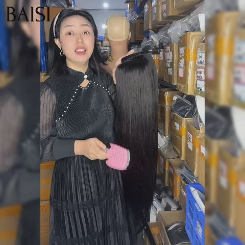 Promo Noël BAISI Luxury Wigs SDD BONE Straight 100% Vietnam Hair 2X6 Lace BOB Wig Black Smooth Vietnam Hair 300% density more than 20 years of use