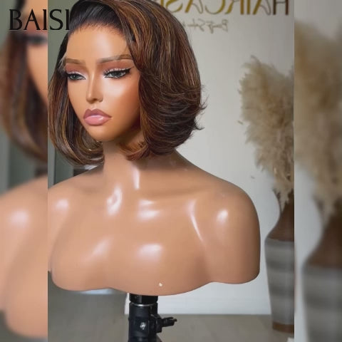 BAISI 4X4 lace Straight Bob Wig 8 Inches In BLACK color Mix Burgundy #1Bmxi#99J in 100% Raw Hair