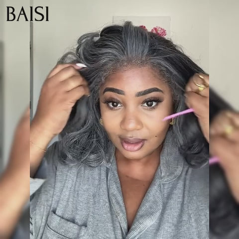 BAISI Collection Poivre et Sel 13X4 Perruques de Luxe Haute Qualité kinky mixte gris 4C 12 pouce 250% densité plus de 20 ans d' utilisations