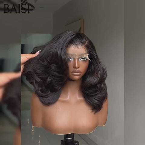 48H Livraison TVA 0€ BAISI 4x4 Perruque Bob Body Wave 16 Pouce 129€ en Noir Sans Colle Lace déjà couper Facile à Porter en 100% Cheveux Humains D CODE: FR20