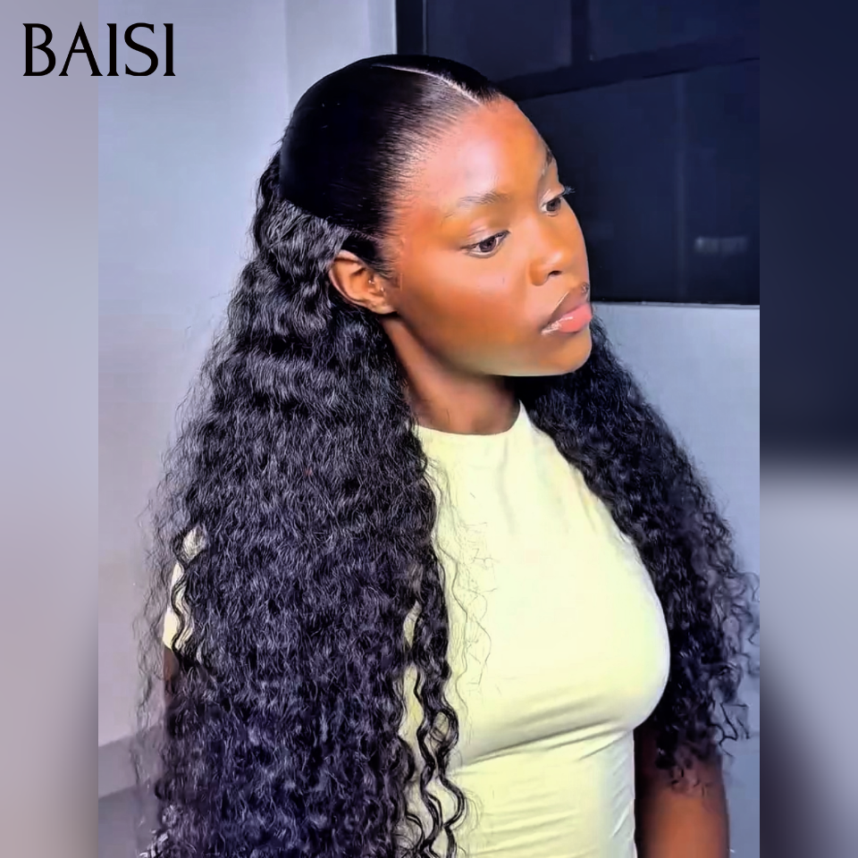 Nouveau produit Perruque Coiffée 13x4 lace frontal deep wave avec Chignon de nattes Déjà Coiffée en 100% Cheveux Humains