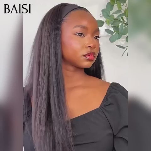 Promo Noël BAISI Perruque Bandeau kinky straight Fabriquée A La Machine sans Colle sans lace en 100% Cheveux Humains
