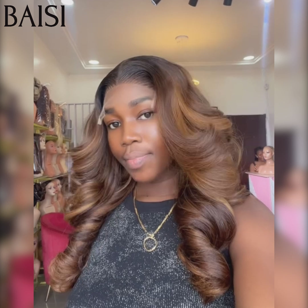 Achetez 2 Prix D'usine BAISI Achetez 2 perruques minimum au prix d'usine fournisseur Perruque 13X4 066C Bouncy Curly 4 Couleur 18 pouces ou 13X4 lace Bouncy Body wave 16 Pouces Mixte 200% densité plus de 20 ans d' utilisations en 100% Cheveux Humains (Pas Besoin de Code)