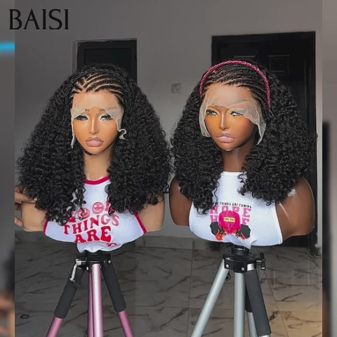 BAISI Fashionable Braided 13x4 Lace Frontal Curly Wig in black color in 100% Human Hair code: FR38