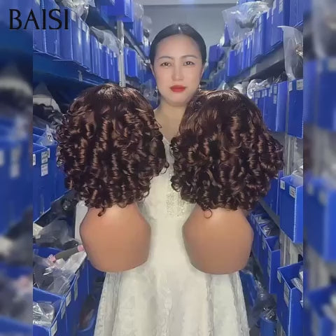 BAISI Vente en gros 2 perruques 100€ 10 Pouces 13x4 lace frontal egg wave en couluer marron en 100% vrais cheveux humains