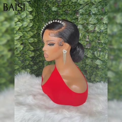 BAISI Coiffure de luxe Mignon Perruques Mariage + Accessoires gratuits Prête à porter chignon et personalisation comme sur la vidéo 100% identique avec lace frontale pour mariage ou événement spécial BS65