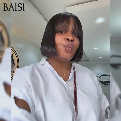 48H Livraison TVA 0€ BAISI Flash Offer €58 Straight Bob With Bangs Luxury Wigs 100% Vietnam Hair SDD BONE STRAIGHT 300% density A1 Made by double drawn hair 15A no Lace no glue FR38