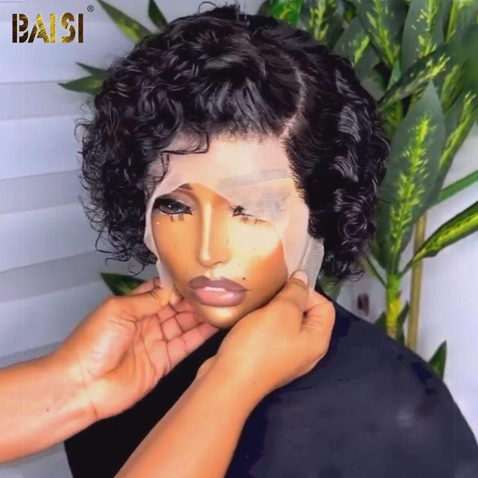 BAISI 100% Human Hair Mixed Color Curly 13x1 Lace Wig Brazilian Indian Hair