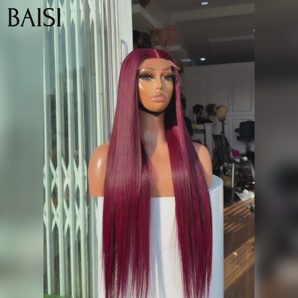 BAISI 13x4 Frontal Perruque Bouncy curl 066C 18 Pouces 149€ en couleurs Bordeaux 99J# en 100% Cheveux Humains