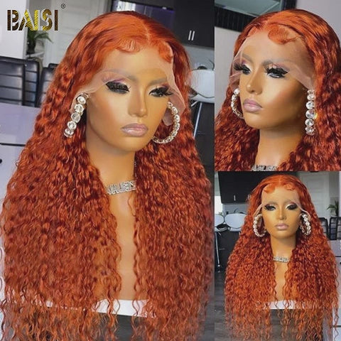 48H Livraison TVA 0€ BAISI 13x4 Lace Frontal Wig Deep Wave Orange in 100% Human Hair