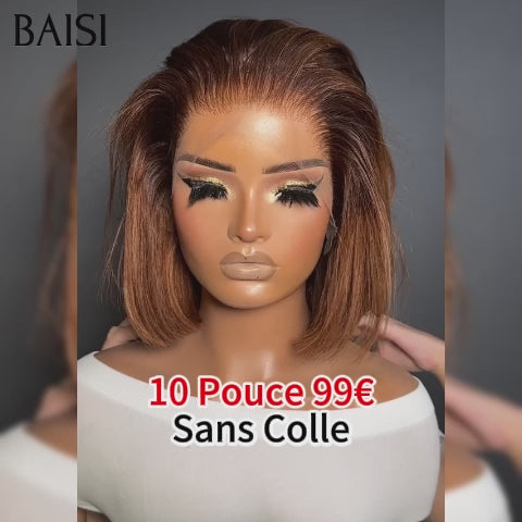 BAISI 13X4 Straight Bob Wig In Brown #4 Pre-Plucked No Glue Needed in 100% Raw Hair Lace Already Cut